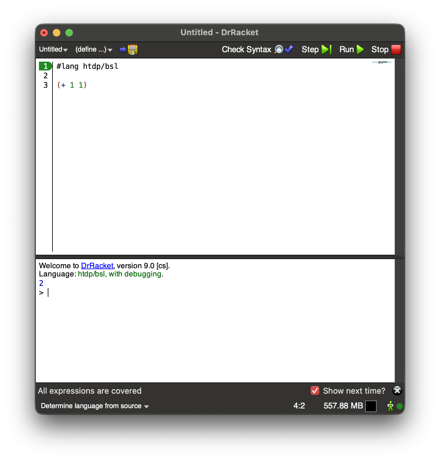 Enter an expression at the prompt, hit the “return” or “enter” key on your keyboard, and watch how DrRacket responds with the result. You can do so as often as you wish: