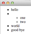 '() (cons 'hello (cons 20.12 (cons "world" '()))) (cons (cons 'hello (cons 20.12 (cons "world" '()))) '())